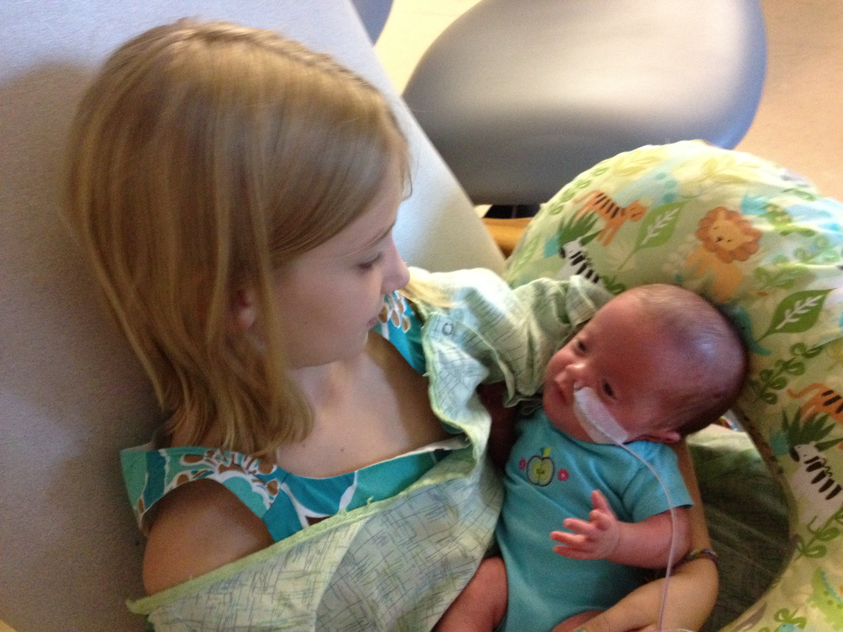 Always the competitive one, Tess seized the opportunity to position herself to come home first by having her shunt placed on Tuesday morning of this week. The neurosurgeon said the surgery went “incredibly well,” and as direct as he is, I take that to be a strong statement of fact! Her recovery has gone well, too. She is back to taking two bottles a day, and the only thing keeping her in the hospital now is feeding.