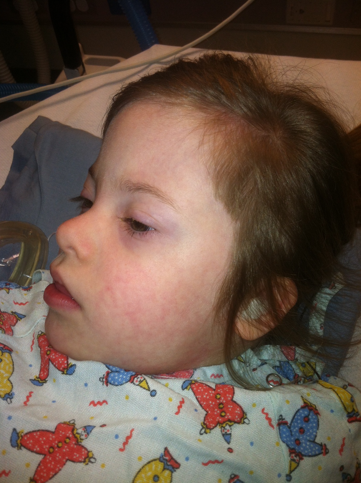 Marina got a second try at her oral surgery today, this time under general anesthesia, so she would continue to breathe (or at least have the vent breathe for her!). Her four wisdom teeth and two pre-molars were successfully extracted, and metal hooks were attached to her upper jaw in preparation for the orthodontic work needed to prepare her for double jaw surgery next summer. The surgery went well, but she had a rough time shaking the anesthesia and some post-op nausea. We are hoping for a smooth, infection-free recovery with minimal pain and NO dry sockets! (No picture here…she would NEVER forgive me!)