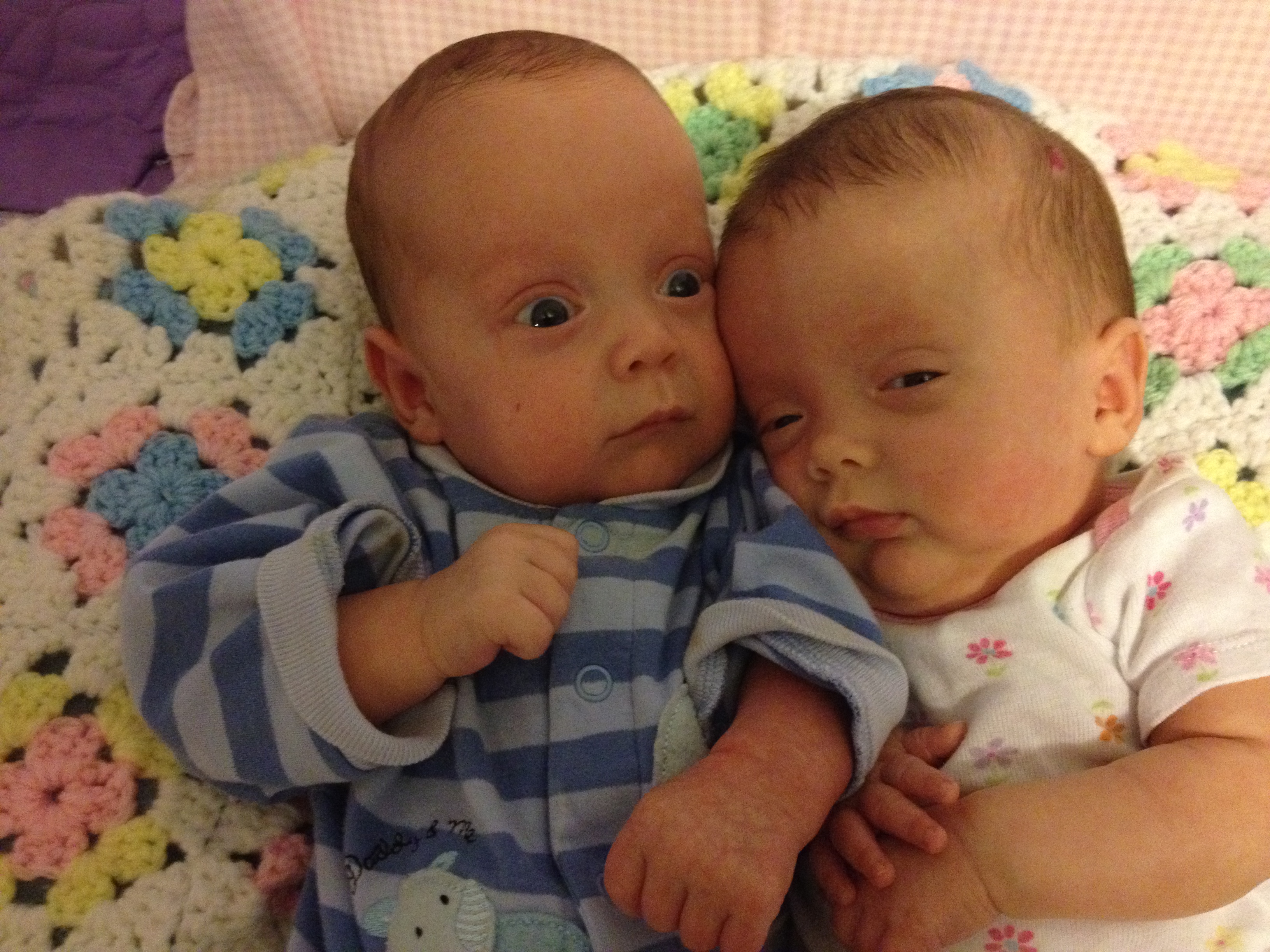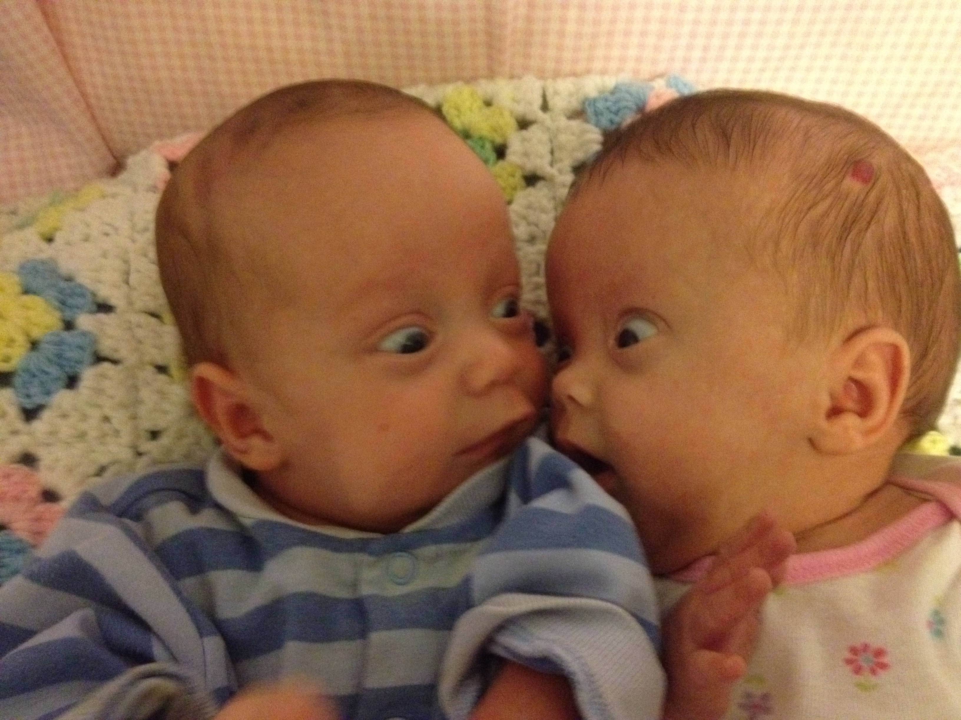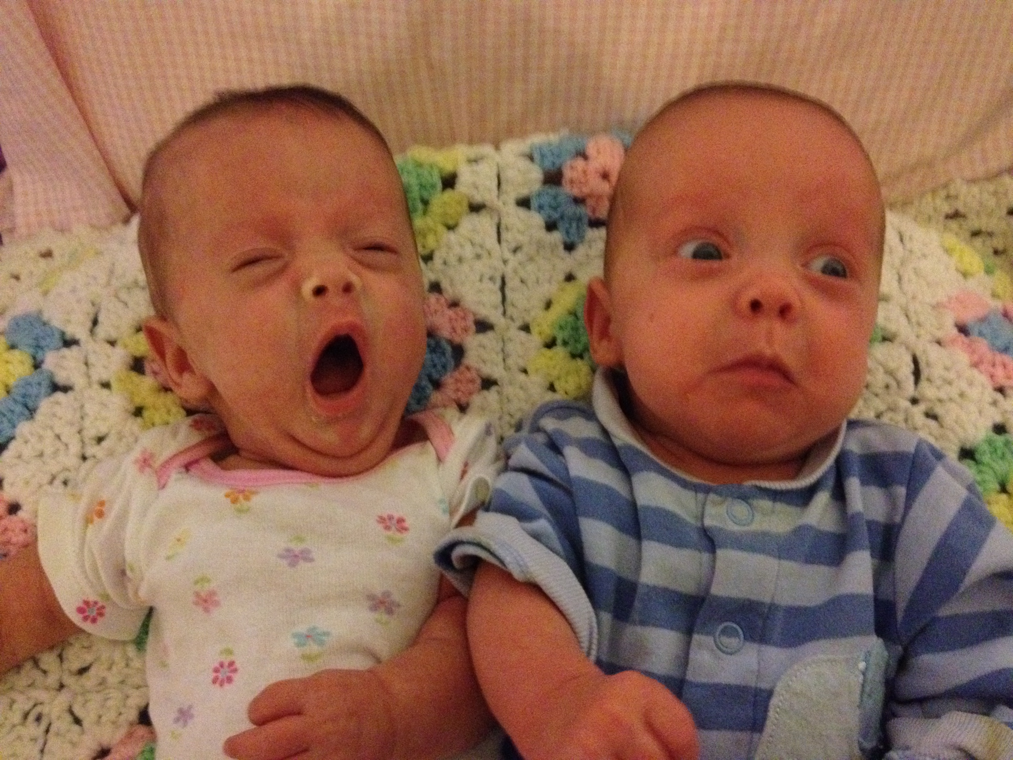 We have enjoyed countless hours of visiting and holding Tess and Titus and getting to know them. Titus is very laid back most of the time and makes the most amazing faces, especially for the camera. Tess has a lot more to say about how she feels about things and does not hesitate to express her dissatisfaction when something is not to her liking. Both are total cuddle bugs! We have enjoyed introducing them to every friend willing to give an hour or two to hold a baby.